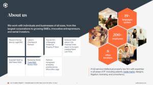 We prioritise your needs and goals, offering personalized services that cater to your unique challenges and opportunities. With a proven track record of successfully supporting clients in achieving their IP objectives, from startups to established enterprises, we provide comprehensive services from initial IP strategy development to ongoing management and enforcement.